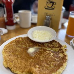 Soooooo good y'all! Corn Pancakes & French Toast Try the hot chocolate!!!! I will be back.